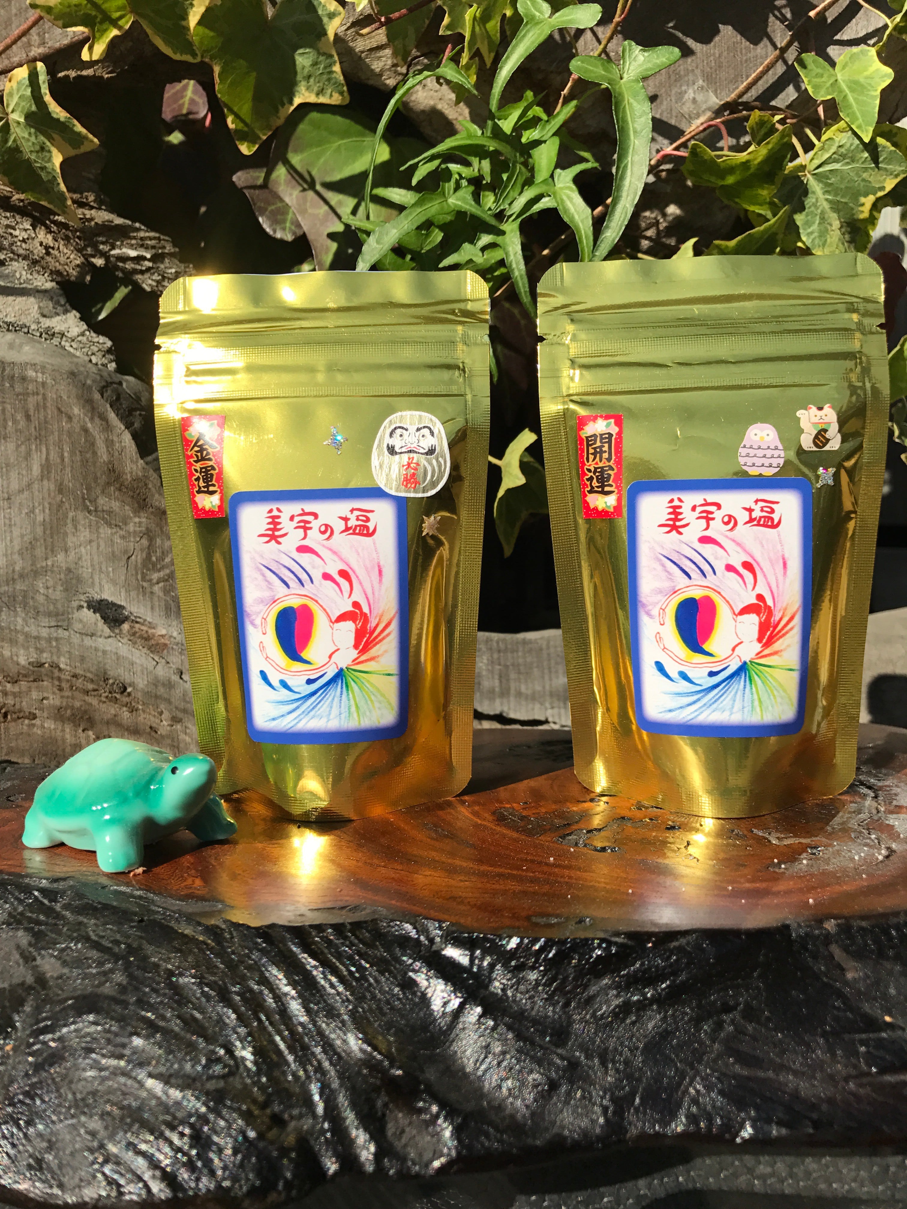 口を開けた状態で、「金運」「開運」と対で置いてください